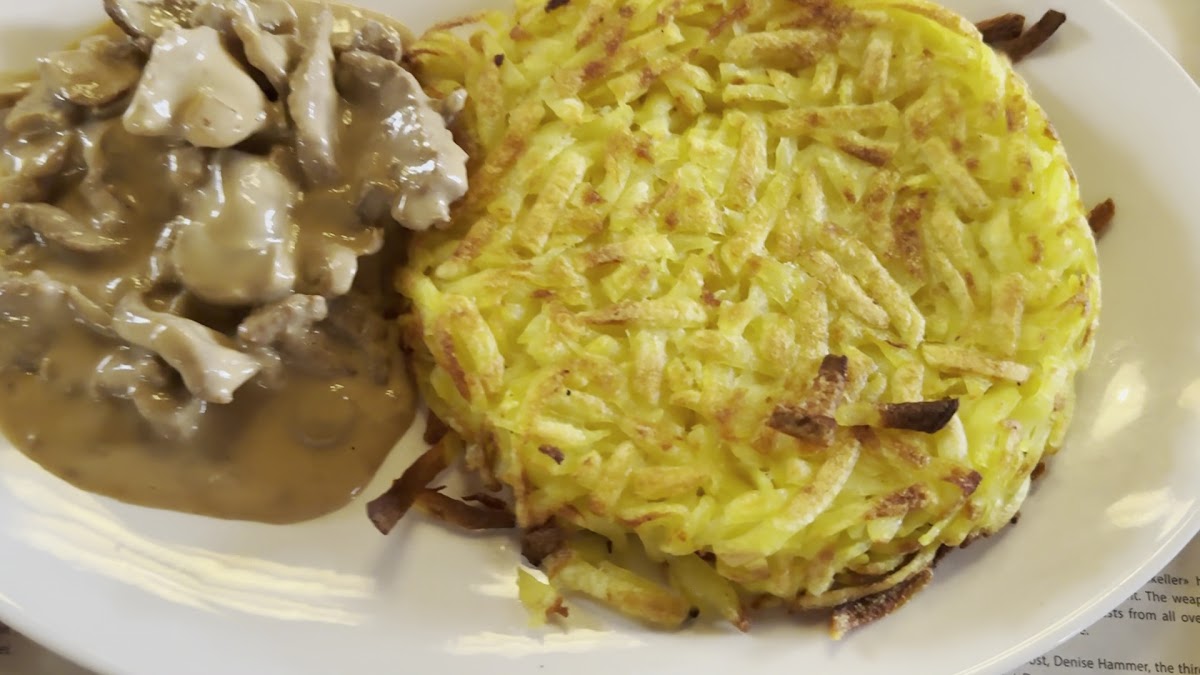 I visited this restaurant three times during my stay, both for lunch and dinner and everything I tried was fantastic! - Pumpkin Soup: One of the best I’ve ever had , light, interesting, and full of flavor. - Chicken Schnitzel with Mushroom Sauce: Perfectly thin and crispy on the outside, juicy inside. The sauce was creamy with a hint of lemon, absolutely delicious! - Rösti: Good but a bit dry for my liking. - Macaroni from their vegetarian options: Made with cheese, potatoes, and caramelized onions. light, comforting, and so good! The atmosphere is super charming, full of character and history. If you’re in a small group, you’ll likely share a table with others, which actually makes it more fun! We ended up having great conversations with our table neighbors :) Can’t wait to come back!